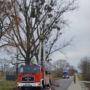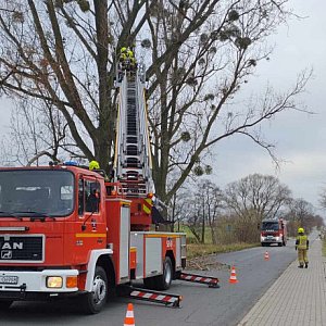 - Po przybyciu strażaków na miejsce okazało się, że kolejne drzewo jest pochylone nad drogę i stwarza zagrożenie dla ruchu. Strażacy przy użyciu pił mechanicznych, z drabiny, usunęli nadłamane konary, a pochylone drzewo zostało wycięte – informuje portal Pleszew24.info st. kpt Paweł Mimier z KP PSP w Pleszewie