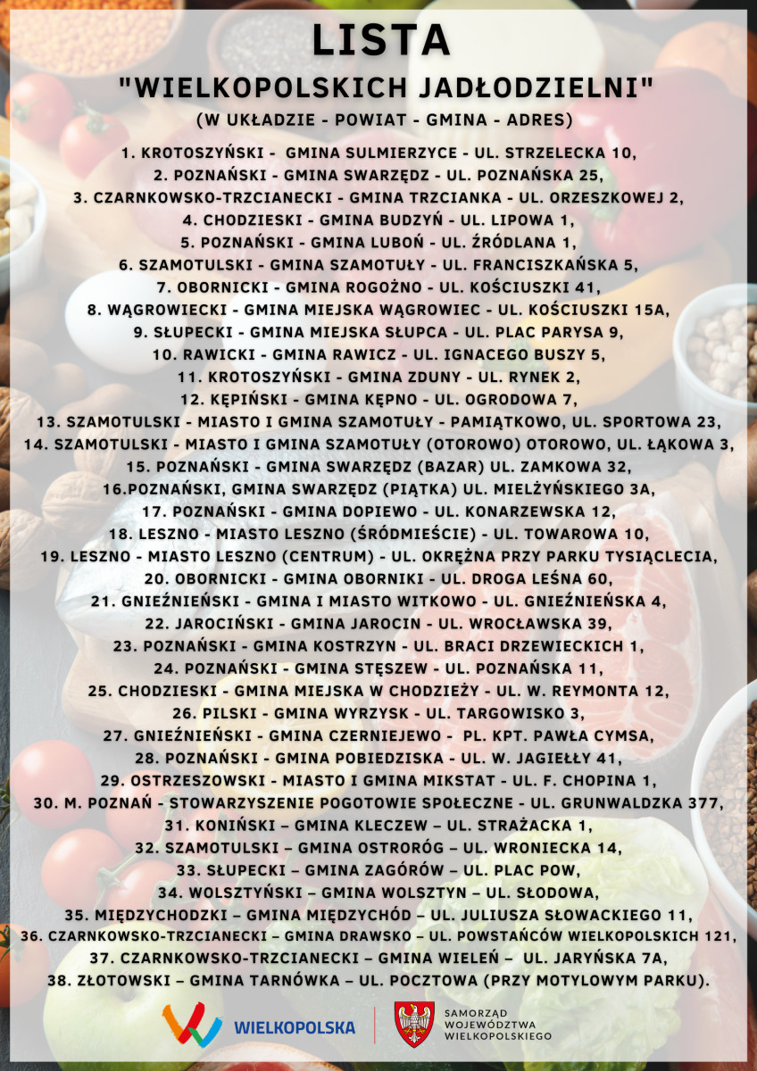 Lista Jadłodzielni na terenie województwa wielkopolskiego: