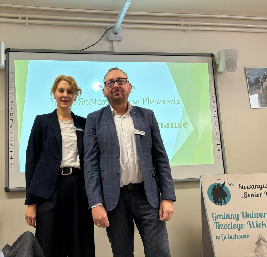 Podczas spotkania przedstawiciele Banku Spółdzielczego w Pleszewie Waldemar Słojewski, kierownik Zespołu Informatycznego, oraz Magdalena Gulczewska, dyrektor Banku Spółdzielczego Oddział w Gołuchowie, rozmawiali z seniorami o bezpieczeństwie w sieci i sposobach ochrony swoich finansów.