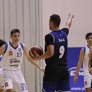 Pleszewianie niemal przez całą pierwszą połowę nie obniżyli wysokiego biegu - w pełni wykorzystywali ofensywną niemoc Enei Basket Poznań i sukcesywnie zwiększali różnicę punktową. Nie pomagały roszady kadrowe i modyfikacje taktyczne - gospodarze byli bezradni. Dzięki wysokiej przewadze, trener ochoczo rotował zawodnikami, przez co zdobyte punkty równo rozkładały się między pleszewskich koszykarzy.