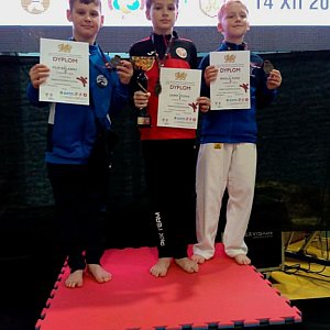 Złotym medalistą został w kumie U12 -30 kg Aleksander Urbaniak wygrywając trzy walki. W finale pokonał swojego kolegę klubowego Macieja Nowakowskiego. W tej samej kategorii brązowy medal wywalczył Borys Małgowski.