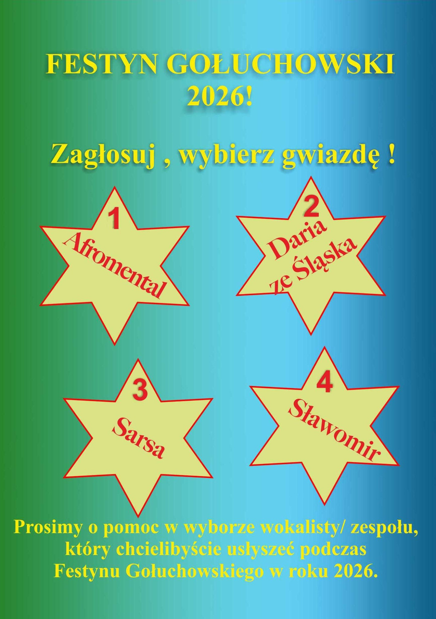 Festyn nocy świętojańskiej nad zalewem w Gołuchowie od kilkunastu lat przyciąga tłumy fanów muzyki i dobrej zabawy z całej południowej Wielkopolski. Teraz Gołuchowski Ośrodek Sportu i Turystyki zwrócił się do internautów. Mogą oni wybrać gwiazdę, jaką chcą słuchać w czerwcu 2026 roku.