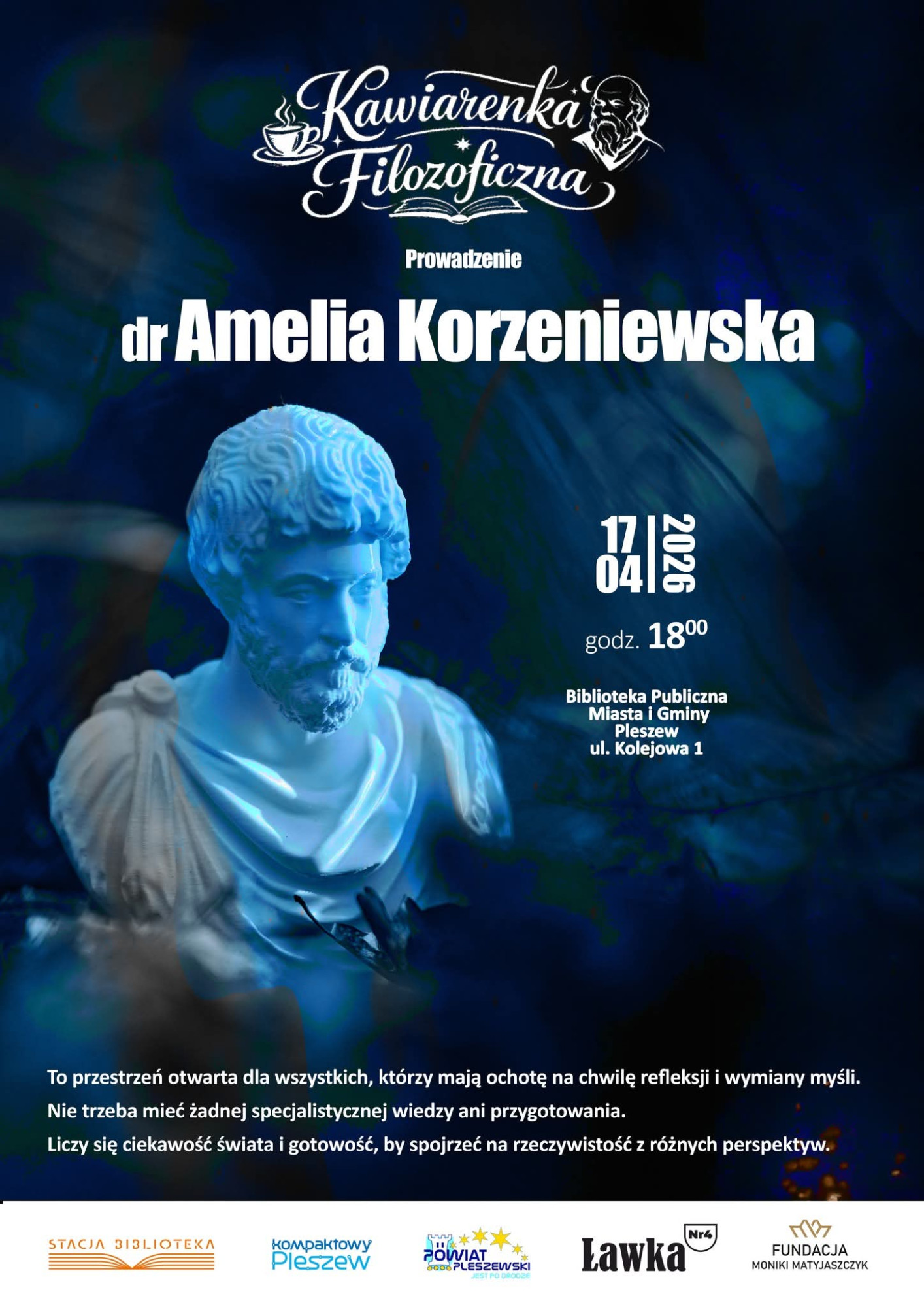 Wydarzenie organizowane jest przez Bibliotekę Publiczną Miasta i Gminy w Pleszewie, Klub Kobiet Ławka Nr 4 oraz Fundację Moniki Matyjaszczyk.