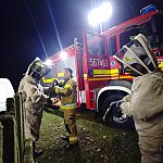 Strażacy z OSP Białobłoty interweniowali na terenie prywatnej posesji. Z ujawnionym kokonem agresywnych owadów właściciel nie był sobie w stanie poradzić samodzielnie. Ratownicy w specjalistycznej odzieży ochronnej usunęli sporych rozmiarów gniazdo.