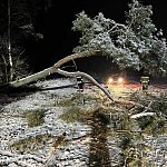 Seria interwencji straży pożarnej w powiecie pleszewskim w nocy z 26 na 27 listopada. Wskutek opadów i ciężkiego śniegu łamały się drzewa, zrywały linie energetyczne, doszło do pożaru transformatora.