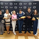 Współpracownicy Michała Grobelnego z PUP w Pleszewie. Na chwilę zamienili biurka na kuchenne blaty, a zamiast dokumentów w ruch poszły miksery i piekarniki. Wszystko po to, by wesprzeć Michała.