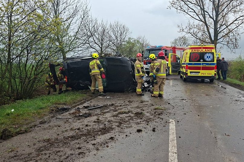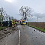 Na drodze powiatowej pomiędzy Fabianowem, a Dobrzycą doszło do dachowania samochodu osobowego. Na miejsce zadysponowano zastęp z Jednostki Ratowniczo – Gaśniczej w Pleszewie oraz jeden zastęp z OSP w Dobrzycy, a także policję Zespół Ratownictwa Medycznego oraz śmigłowiec Lotniczego Pogotowia Ratunkowego.