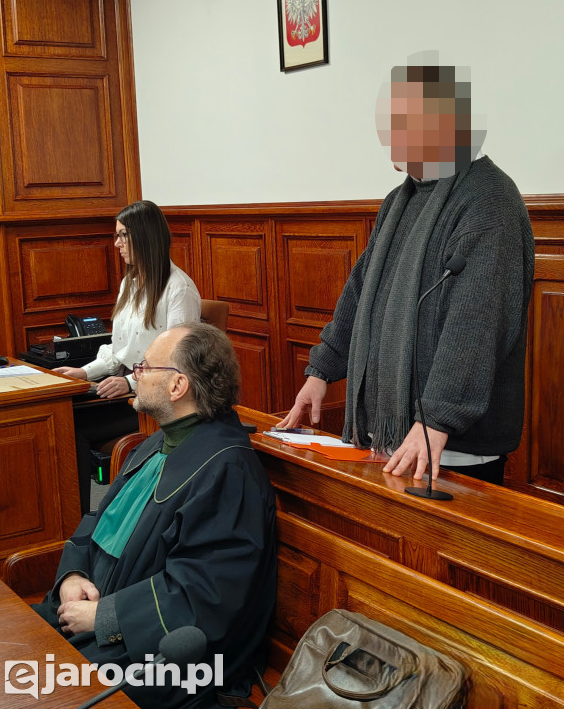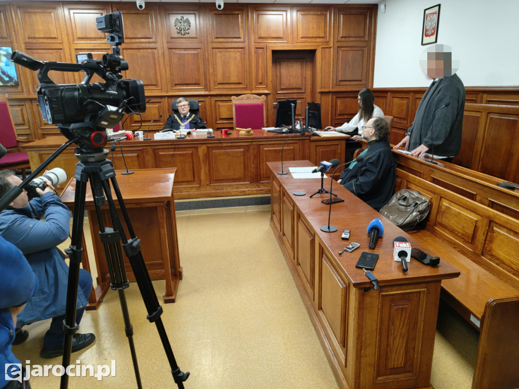 Oskarżony pojawił się w sądzie tuż przed rozpoczęciem rozprawy. Miał na twarzy maseczkę ochronną – rzadki dziś widok – którą zdjął dopiero po wejściu na salę. Oskarżony nie przyznaje się do winy i odmówił składania wyjaśnień. Sąd odczytał jego zeznania.
