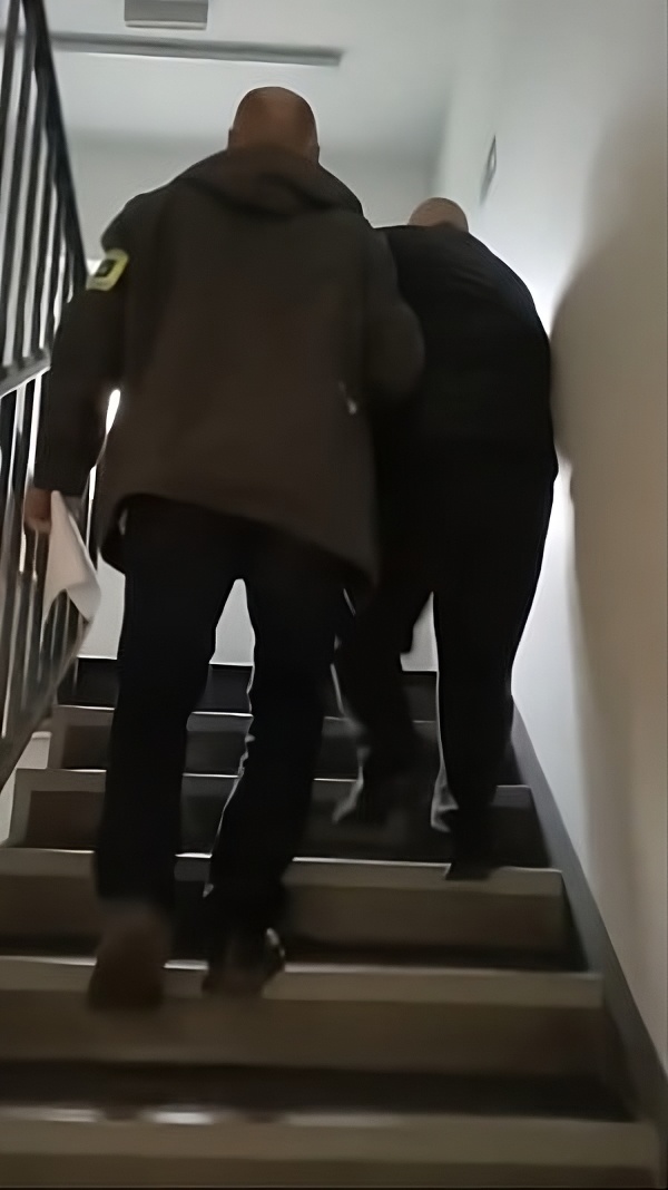 Doprowadzenie jednego z zatrzymanych na przesłuchanie
