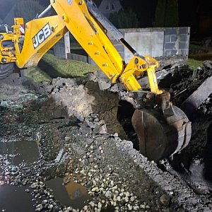 Na miejscu pojawiła się również koparka przy pomocy której można było wspomóc działania strażaków.