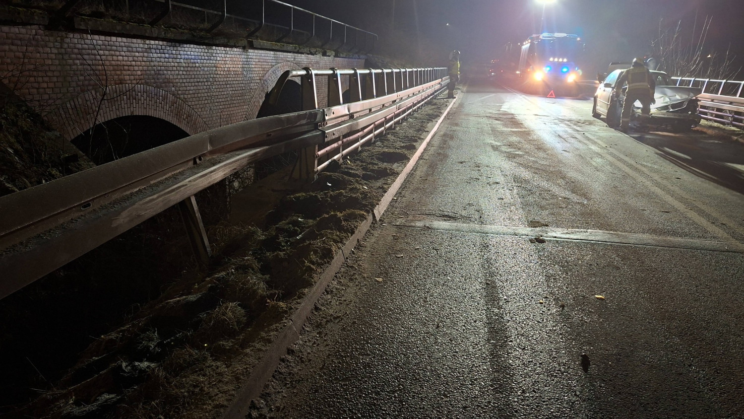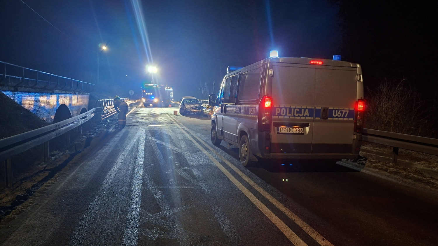 Strażacy uprzątnęli z jezdni elementy nadwozia, które odpadły w wyniku uderzenia, a także usunęli rozlane płyny eksploatacyjne, aby nie stwarzały zagrożenia dla innych uczestników ruchu.