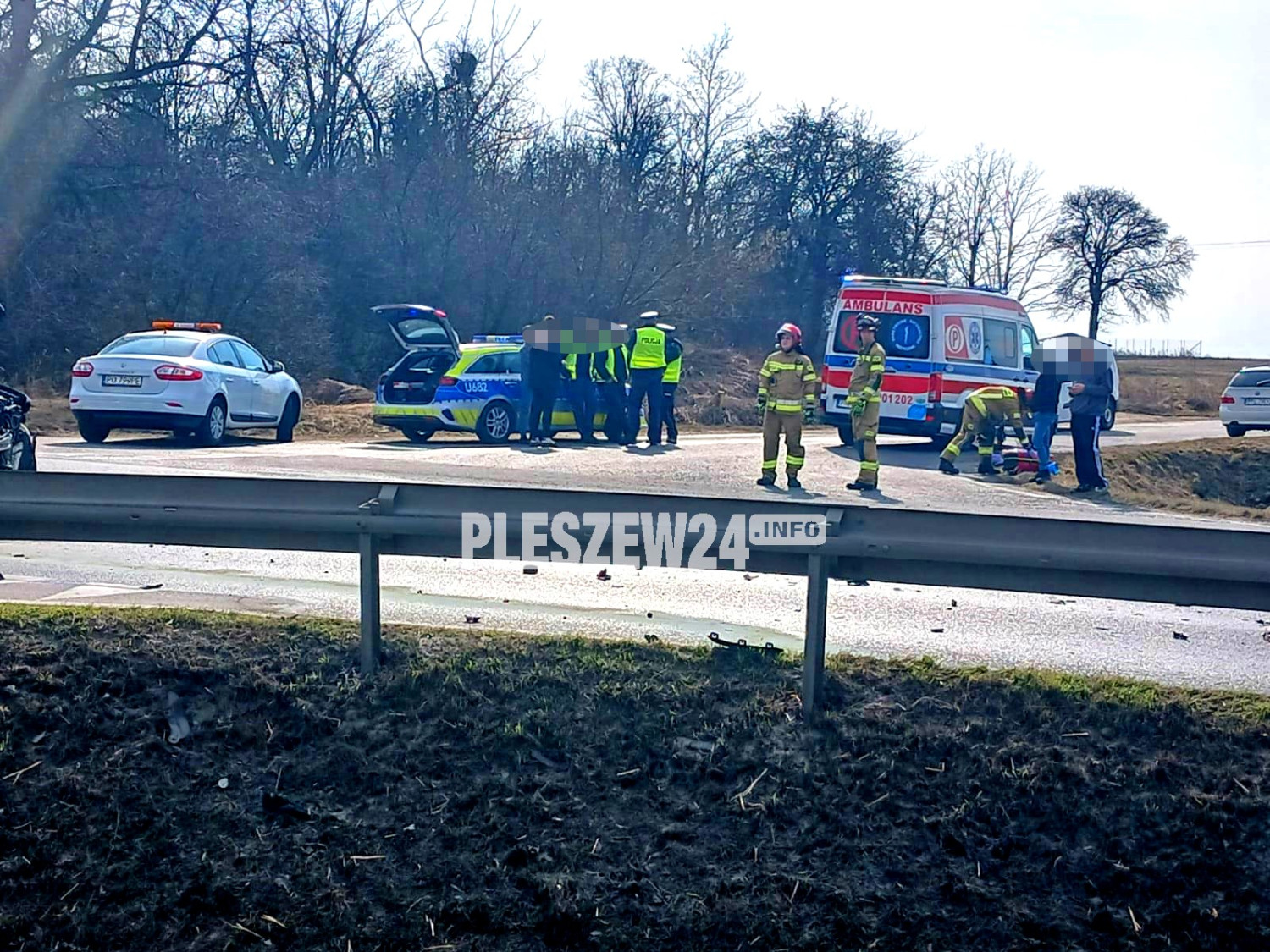 Na miejscu czynności prowadzą funkcjonariusze Komendy Powiatowej Policji w Pleszewie. Na miejsce zadysponowano dwa zastępy strażaków z Jednostki Ratowniczo - Gaśniczej KP PSP w Pleszewie oraz Zespół Ratownictwa Medycznego.
