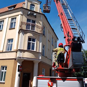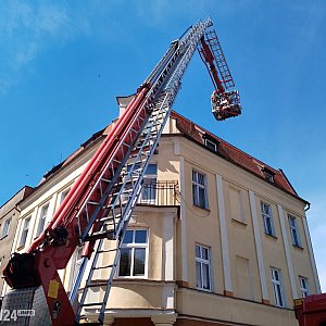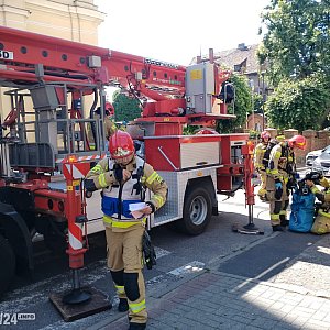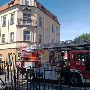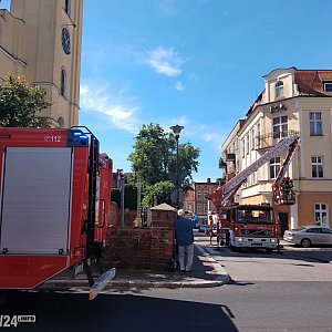Na miejsce skierowano trzy zastępy PSP w Pleszewie, w tym samochód z podnośnikiem koszowym. Przybyła też policja, wspomagana przez straż miejską, ponieważ trzeba było zamknąć wjazd na Plac Kościelny.