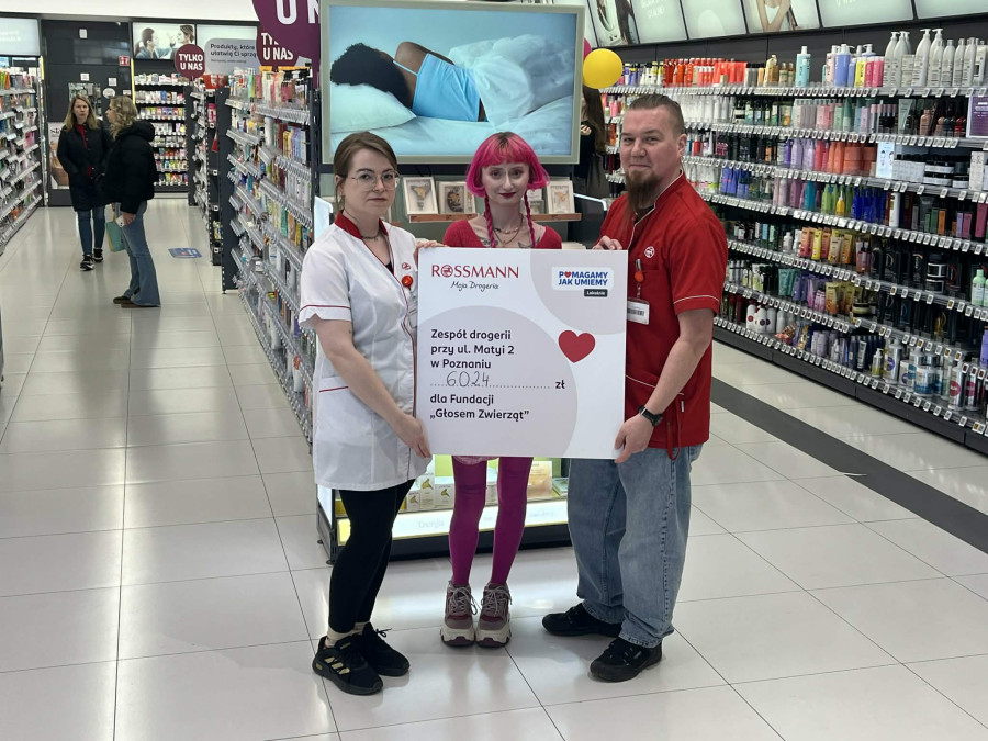 Poznańska Fundacja „Głosem Zwierząt” od 2011 roku niesie pomoc bezdomnym zwierzętom. Zajmuje się ich leczeniem, socjalizacją i przystosowaniem do adopcji. Organizacja prowadzi własną kociarnię w Poznaniu oraz współpracuje ze schroniskami dla zwierząt bezdomnych w Dopiewie i Poznaniu. Od chwili powstania fundacja znalazła domy dla tysięcy podopiecznych. O wsparciu właśnie tej organizacji zdecydował zespół poznańskiej drogerii.