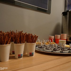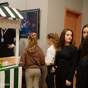 Młodzi wolontariusze przygotowali napoje i przekąski, które oferowali w ramach kinowej kawiarenki. Nie mogło zabraknąć przecież w kinie coli i popcornu. Była również gorąca, jesienna herbatka i babeczki z... wróżbą. Seans zakończył się quizem na temat filmu i spontaniczną grą w mafię.