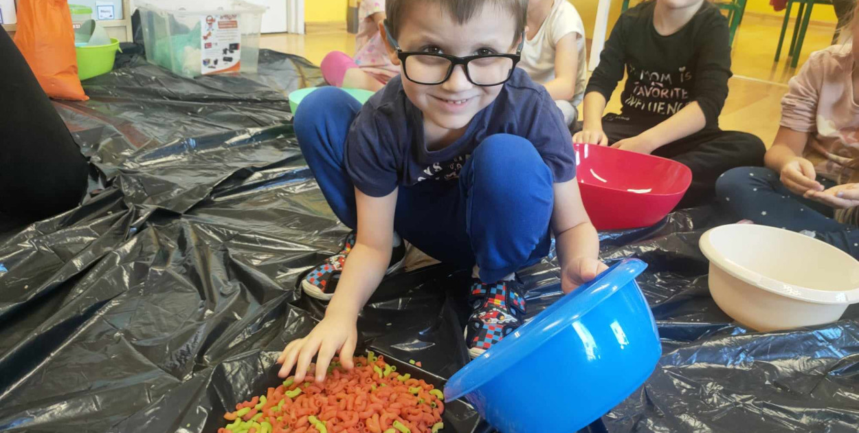 Grupa Krokuski z Publicznego Przedszkola nr 3 "Słoneczne" w Pleszewie bierze udział w innowacji pedagogicznej pt.: ,,Kolorowe zajęcia czyli Sensoplastyka’’. Tematem zajęć była sensoryczna truskawka. Tym razem dzieci poznały jeden ze sposobów farbowania makaronu i ryżu. Było bardzo zabawnie i kolorowo.
