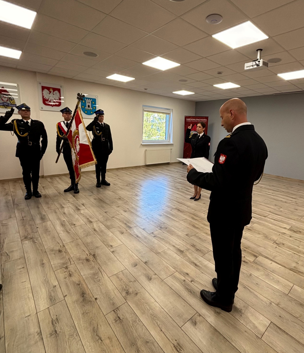 Podczas uroczystej zbiórki, w obecności funkcjonariuszy oraz kadry kierowniczej, słowa roty ślubowania wypowiedziała str. Justyna Rosik, symbolicznie wstępując w szeregi strażaków Państwowej Straży Pożarnej. Ceremoniał przewiduje, że akt ślubowania przyjmuje komendant jednostki.