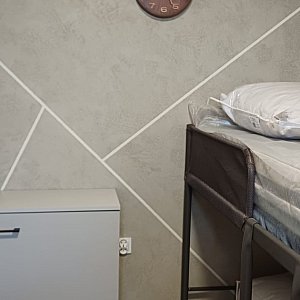Lokum zlokalizowane jest na drugim piętrze budynku. Choć niewielkie, już od progu widać, że przygotowano je z sercem. Zostało wyposażony we wszystkie niezbędne elementy, które pozwolą mieszkańcom funkcjonować w godnych warunkach przez określony czas. Znajduje się tu piętrowe łóżko, mała kuchnia z podstawowym wyposażeniem, łazienka z prysznicem, stół, krzesła, komoda oraz balkon z widokiem na miasto.
