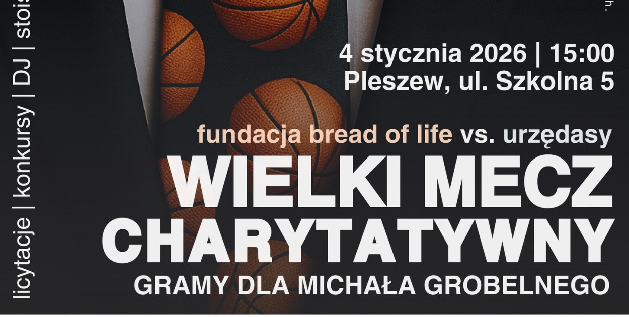 O godzinie 15:00 w hali sportowej przy ul. Szkolnej 5 odbędzie się Wielki Mecz Charytatywny „Gramy z sercem dla Michała”. Na parkiecie zmierzą się dwie drużyny: Fundacja Bread of Life oraz FC Urzędasy.