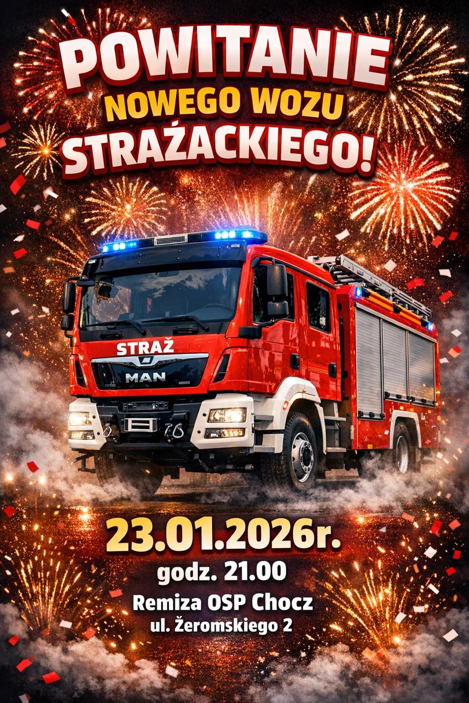 Ochotnicza Straż Pożarna w Choczu zaprasza mieszkańców, sympatyków jednostki oraz druhów z okolicznych jednostek OSP na uroczyste powitanie nowego średniego samochodu ratowniczo-gaśniczego. Dla strażaków, którzy dbają o bezpieczeństwo mieszkańców, to powód do dumy, ale i narzędzie pozwalające wznieść ich pracę na wyższy poziom.
