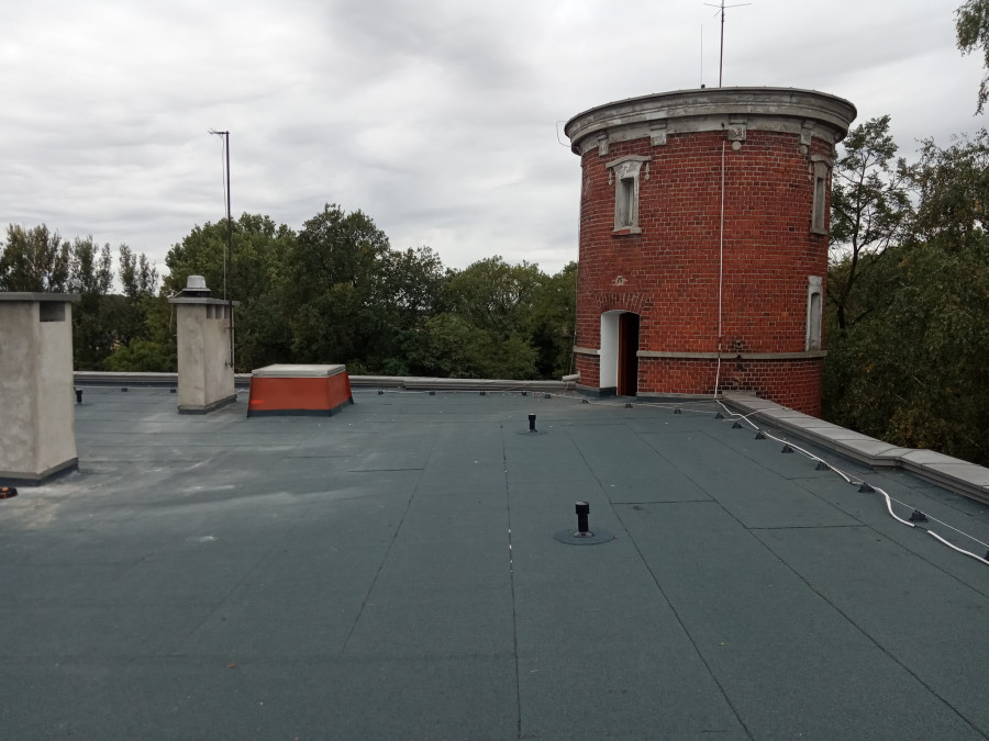Zakres prac obejmował m.in. docieplenie stropodachu, wymianę pokrycia na papę termozgrzewalną, wykonanie obróbek blacharskich z patynowanej blachy tytanowo-cynkowej, uszczelnienie centralnej rury spustowej wraz z podłączeniem do kanalizacji deszczowej, a także remont kominów i instalacji odgromowej. Odświeżono również wnętrze wieży.
