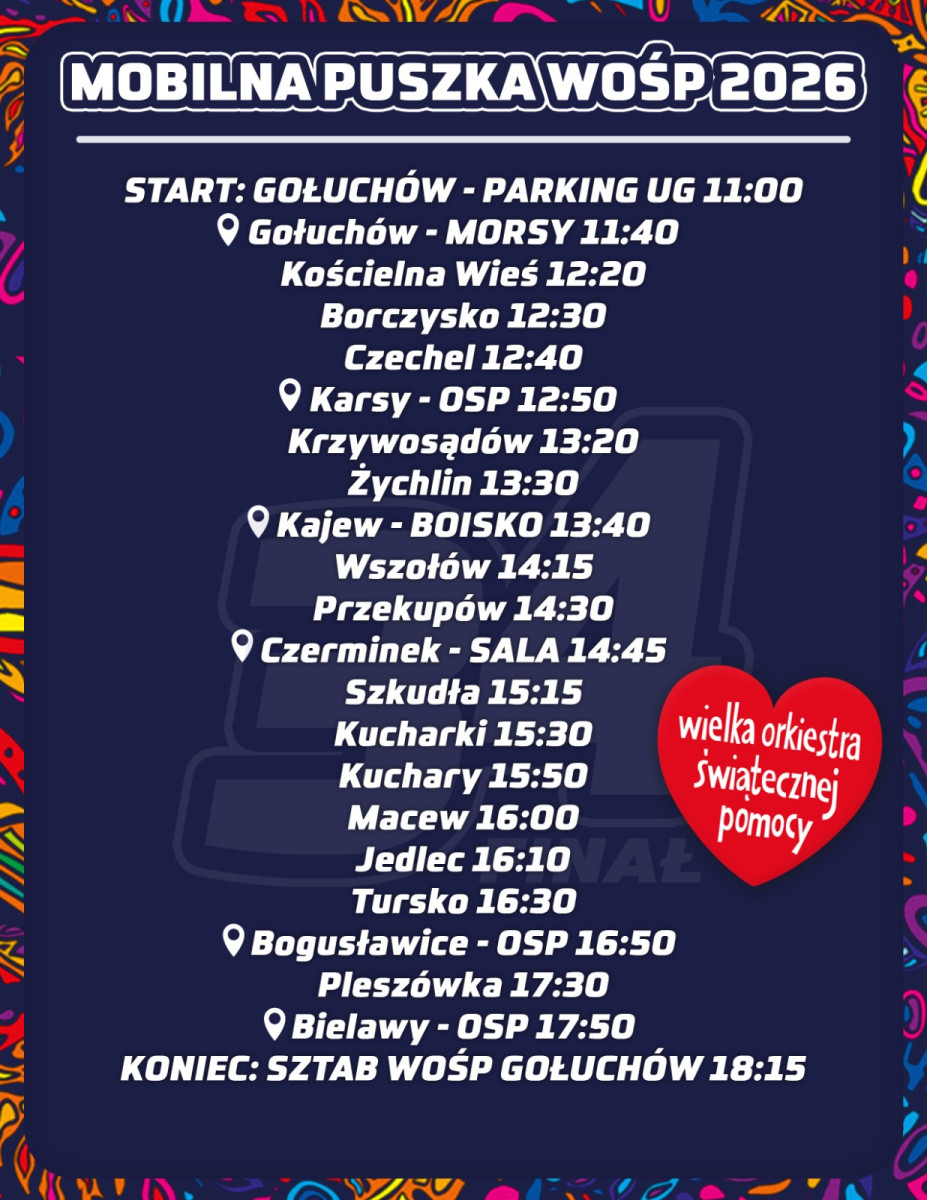 Tegoroczny finał to nie tylko zbiórka do puszek, ale także dziesiątki wydarzeń towarzyszących: koncerty, turnieje sportowe, licytacje, animacje dla dzieci i mnóstwo lokalnych inicjatyw. Poniżej prezentujemy plakaty zapowiadające wydarzenia organizowane w ramach WOŚP – sprawdź, co będzie się działo i dołącz do wspólnego grania na rzecz leczenia chorób przewodu pokarmowego u dzieci.