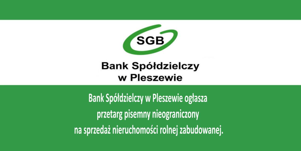 Bank Spółdzielczy w Pleszewie ogłasza przetarg pisemny nieograniczony na sprzedaż nieruchomości rolnej zabudowanej: