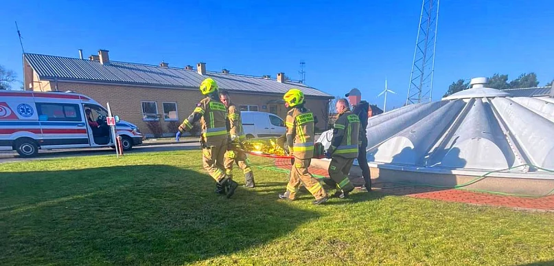 [Zdjęcia] Człowiek spadł z dachu w Dobrzycy