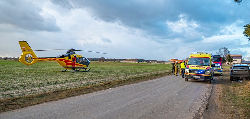 [Foto] Ciężki wypadek młodzieńca na hulajnodze. LPR zabrało go do Poznania