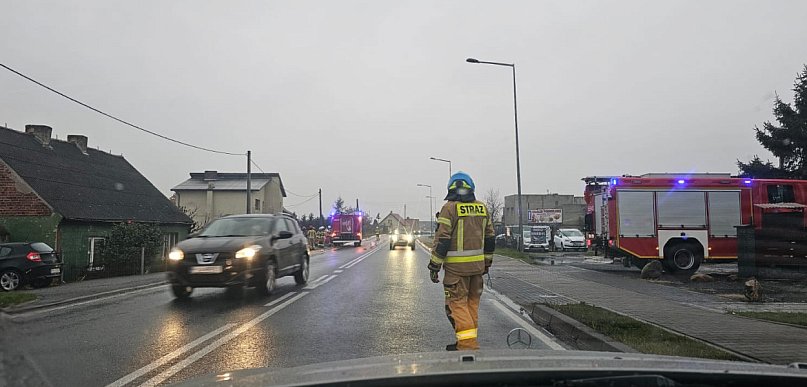 [Fot] Wypadek pod Pleszewem. Akcja na krajówce, dwie osoby w szpitalu