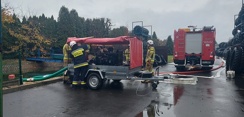 [Foto] Firma z gm. Gołuchów zagrożona. Na miejscu straże z dwóch powiatów