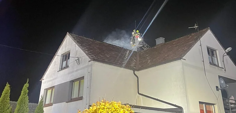 [Zdjęcia] Nocny pożar w Strzyżewie. Strażacy na miejscu zdarzenia