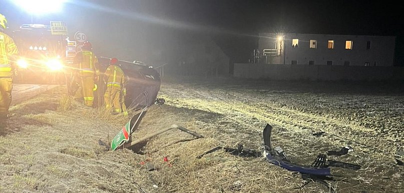 [Zdjęcia] Wieczorne zdarzenie na drodze powiatowej. Służby na miejscu