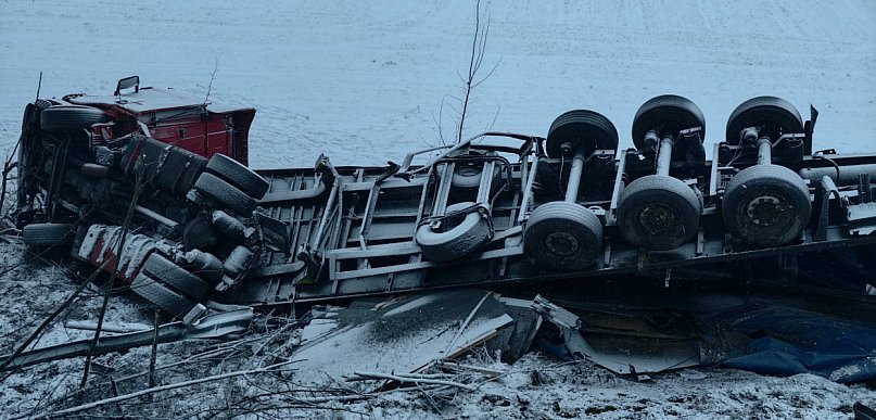 [Foto] Ciężarówka spadła ze skarpy drogi krajowej w Pleszewie. Utrudnienia